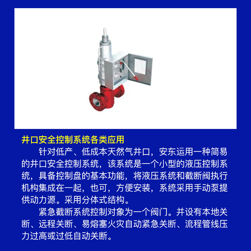 适用范围:井口控制系统,控制安全阀及井口旋塞阀等